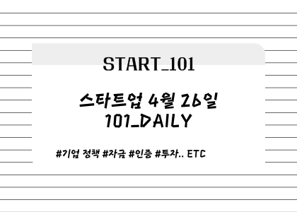 | [START] 스타트업 4월 28일(목)_창업 뉴스레터 (101_DAILY) (1) | 2022.04.28 |