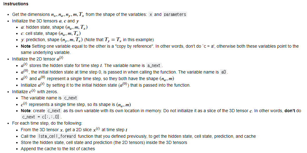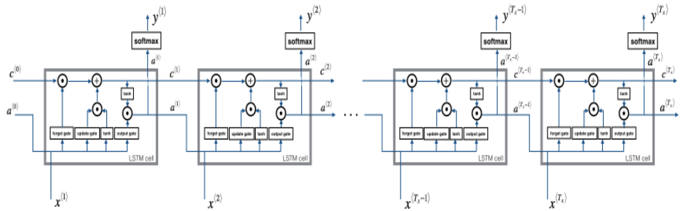 - Implement a loop over 𝑇𝑥Tx time steps in order to process all the inputs, one at a time.