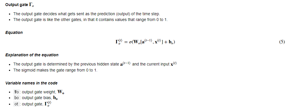 # compute output of the current cell using the formula given above