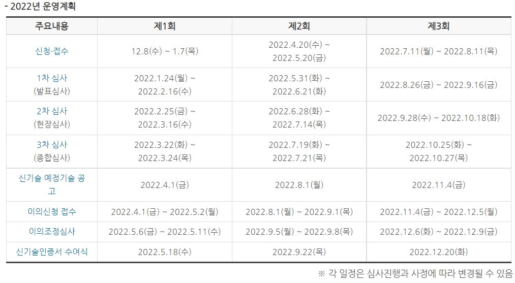 - '2022년 제1회 신기술(NET)인증 신규신청 및 유효기간 연장신청 접수공고'_KEY POINT