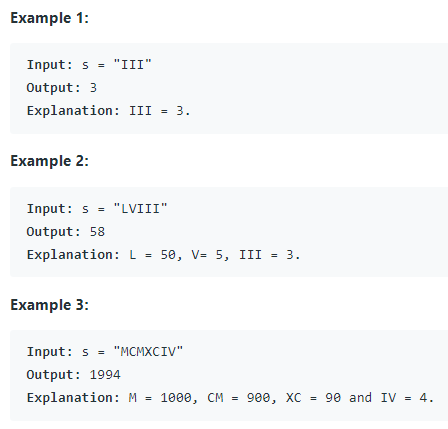 - It is guaranteed that s is a valid roman numeral in the range [1, 3999].