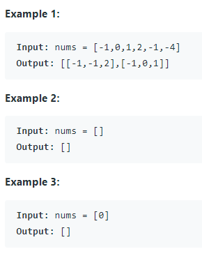 i != j, i != k, j != k, nums[i] + nums[j] + nums[k] == 0이 되어야 합니다.