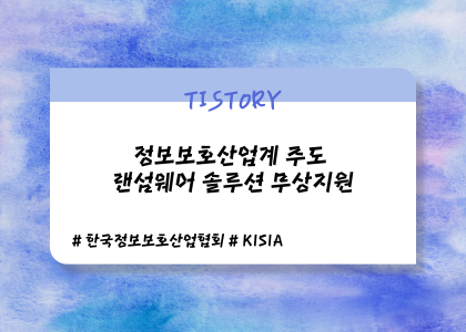 이번에는 '한국정보보호산업협회(KISIA)'에서 진행하는 '정보보호산업계 주도 랜섬웨어 솔루션 무상지원' 사업에서 ' 보안 투자 여력이 없는 중소기업을 대상으로 랜섬웨어 피해 예방'을 위해 신규 중소기업, 스타트업을 모집하고 있습니다.