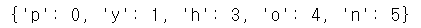 sample_dic = {'p': 0,'y': 1, 't': 2, 'h': 3,'o': 4, 'n':5}
