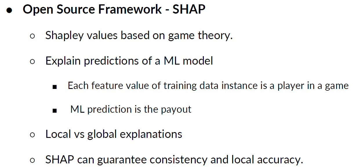 SHAP (SHapley Additive exPlanations) is a game theoretic approach to explain the output of any machine learning model. It connects optimal credit allocation with local explanations using the classic Shapley values from game theory and their related extensions