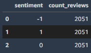 You can also choose whether you want to balance the dataset or not. In this case, you will balance the dataset to avoid class imbalance in the target variable, sentiment.