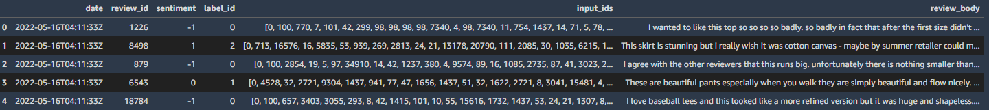 In this lab you will start with the raw Women's Clothing Reviews dataset and prepare it to train a BERT-based natural language processing (NLP) model. The model will be used to classify customer reviews into positive (1), neutral (0) and negative (-1) sentiment.