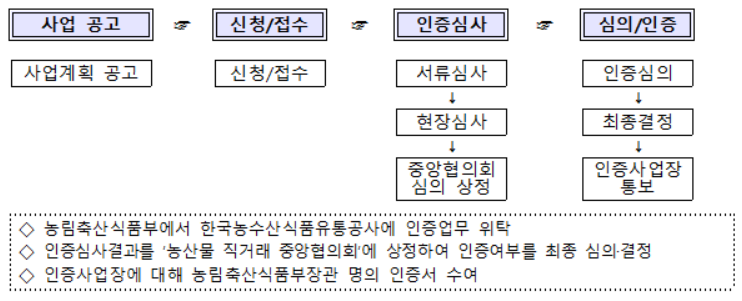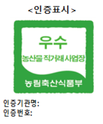 | 지원사항 | 우수 농산물 직거래사업장 인증 (2년) |