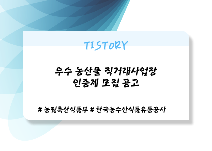 오늘은 '농림축산식품부'와 '한국농수산식품유통공사(aT)'가 주관하는 '우수 농산물 직거래사업장 인증제'에 대해서 알아봤습니다. 그럼 오늘 하루도 즐거운 나날되세요