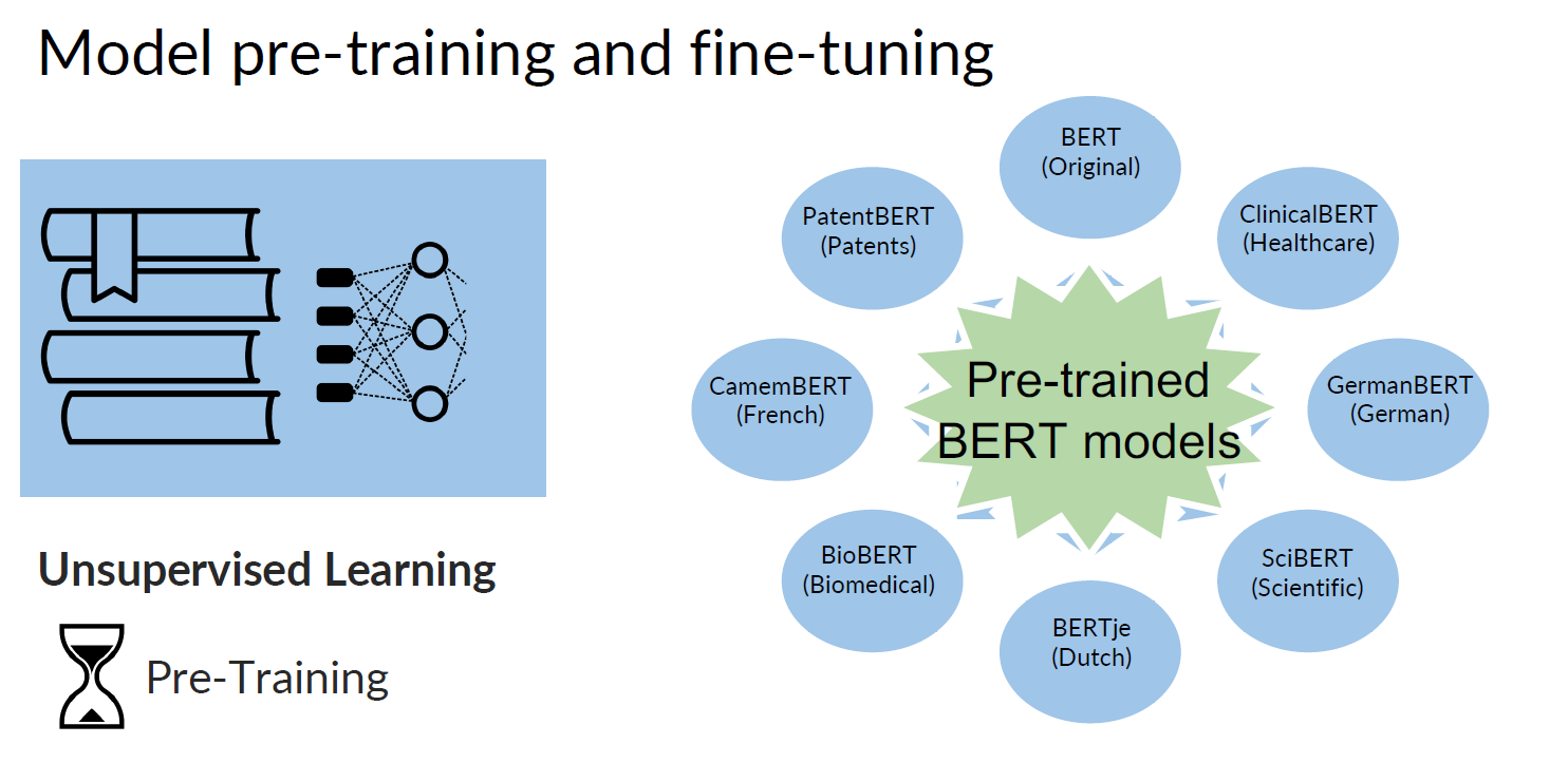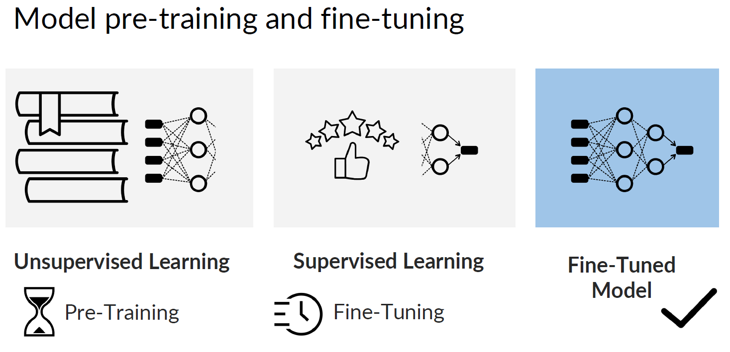 Pre-trained data에서 Fine-Tuning은 pre-trained data에 훈련에 사용할 데이터를 이어서 훈련시키는 것을 의미합니다. 예를 들어, 상품 리뷰 분석 모델을 만들고 싶은 경우에, 기존에 훈련된 pre-trained model에 상품 리뷰 text를 훈련시키는 것입니다.