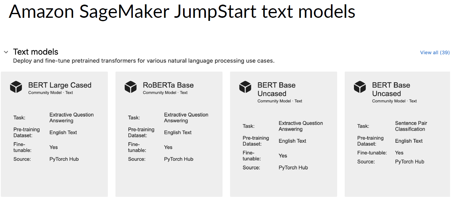 또한 AWS에 위의 pre-trained model을 직접 연결해서 활용할 수 있습니다.
