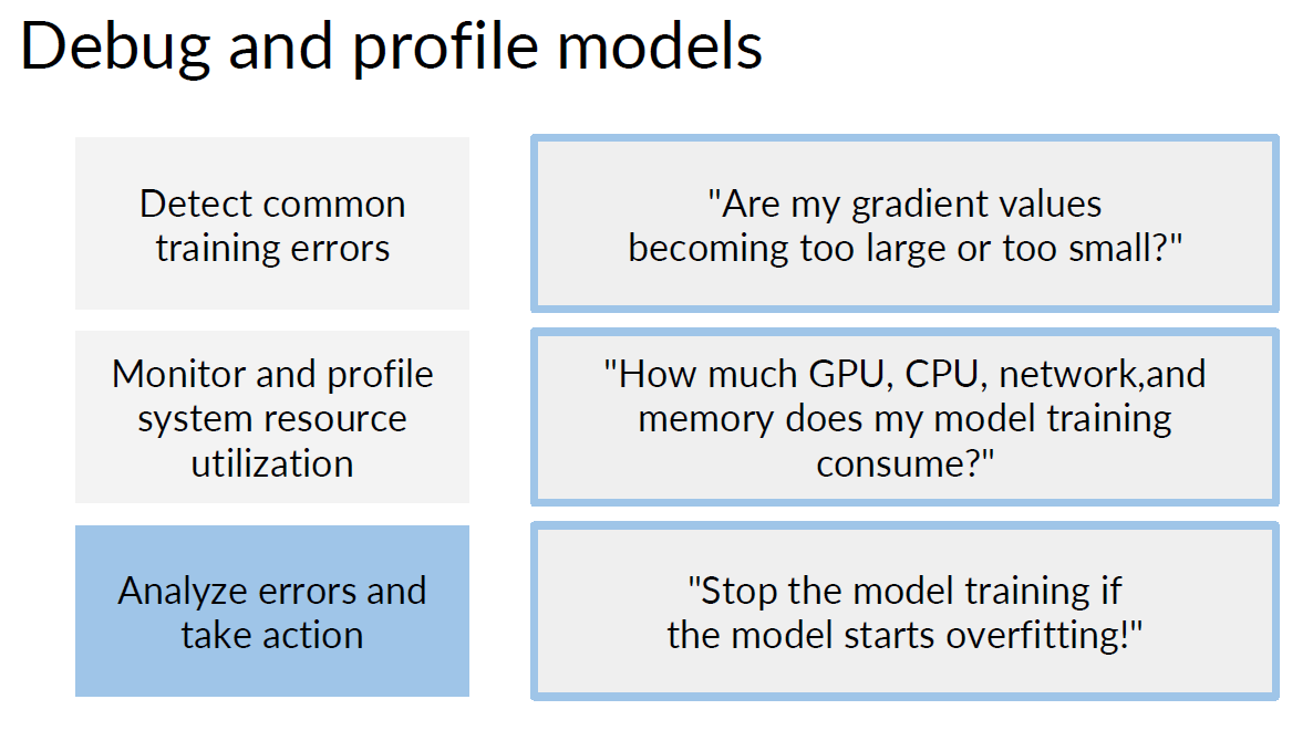 □ Debug and Profile Models with Amazon SageMaker Debugger