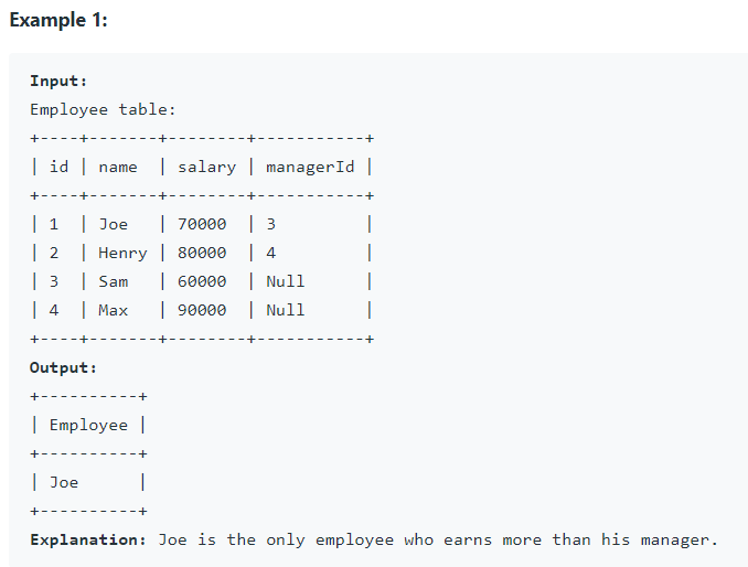 오늘은 Leetcode 알고리즘 문제 '181. Employees Earning More Than Their Managers'에 대해서 살펴보고자 합니다.