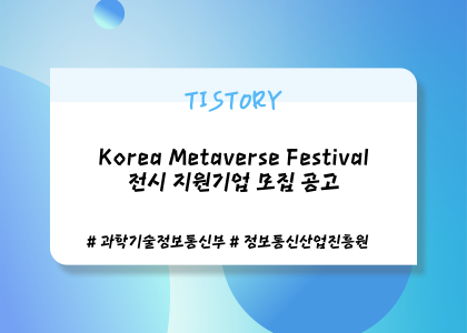 오늘은 '과학기술정보통신부', '정보통신산업진흥원'가 주관하는 'Korea Metaverse Festival 2021 전시 지원기업 모집공고'에 대해서 알아봤습니다. 그럼 오늘 하루도 즐거운 나날되세요
