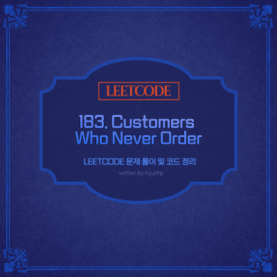 오늘은 Leetcode 알고리즘 문제 '183. Customers Who Never Order'에 대해서 살펴보고자 합니다.