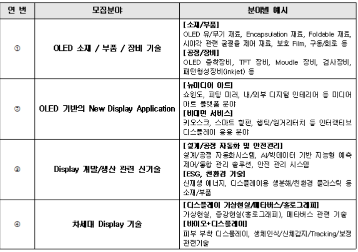 △ 신청분야: OLED 등 디스플레이 관련 응용 및 협력분야 중 택 1