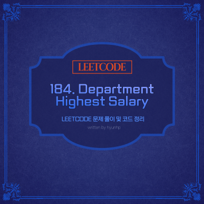 오늘은 Leetcode 알고리즘 문제 '184. Department Highest Salary'에 대해서 살펴보고자 합니다.
