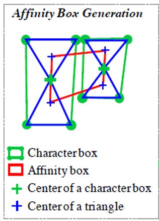 - 그런 다음 인접한 각 문자 상자 쌍에 대해 위쪽 및 아래쪽 삼각형의 중심을 상자의 모서리로 설정하여 affinity box를 생성합니다.