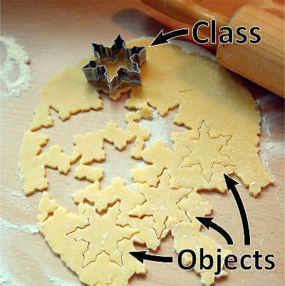 클래스에 대해서 많이 사용되는 은유는 '과자 틀'과 '과자 틀로 만든 과자'입니다.