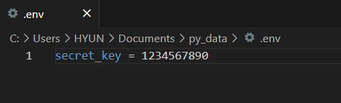 만약에 secret_key = '1234567890'으로 '.env'에 저장하였다면, 따옴표로 묶인 '123456890'이 반환됩니다.
