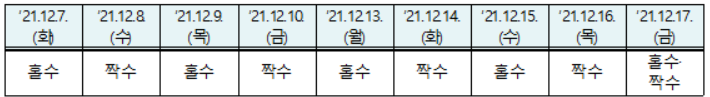 △ 신청기간: 2021년 12월 07일 ~ 2021년 12월 17일, 홀·짝제 신청