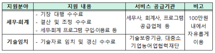 △ 지원사항: 세무ㆍ회계ㆍ기술 임치 비용을 바우처 형식으로 연 100만 원까지 지원