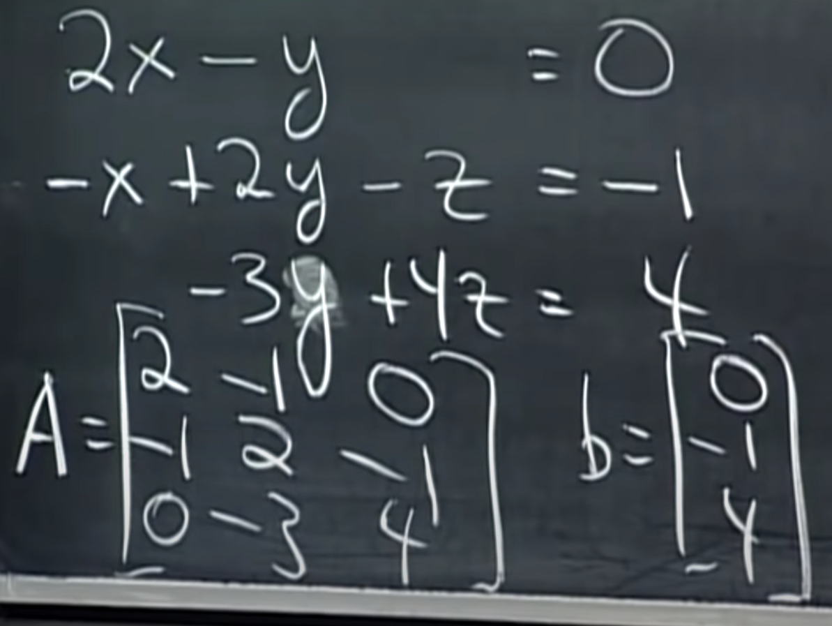 "MIT 18.06 Linear Algebra, Spring 2005"의 1주차 "The geometry of linear equations"의 강의 내용입니다.