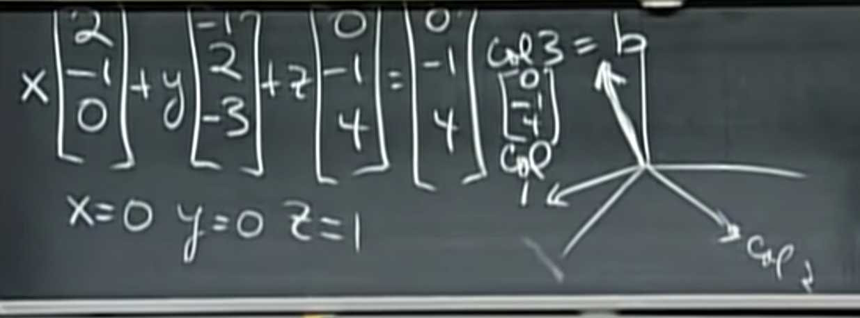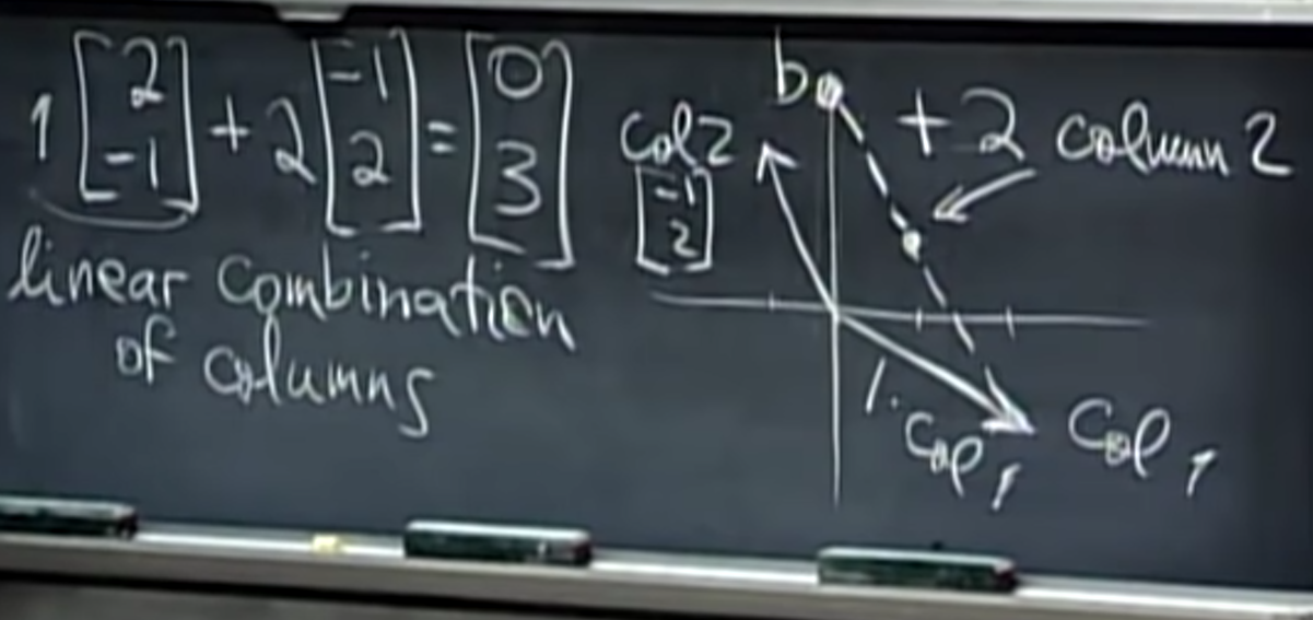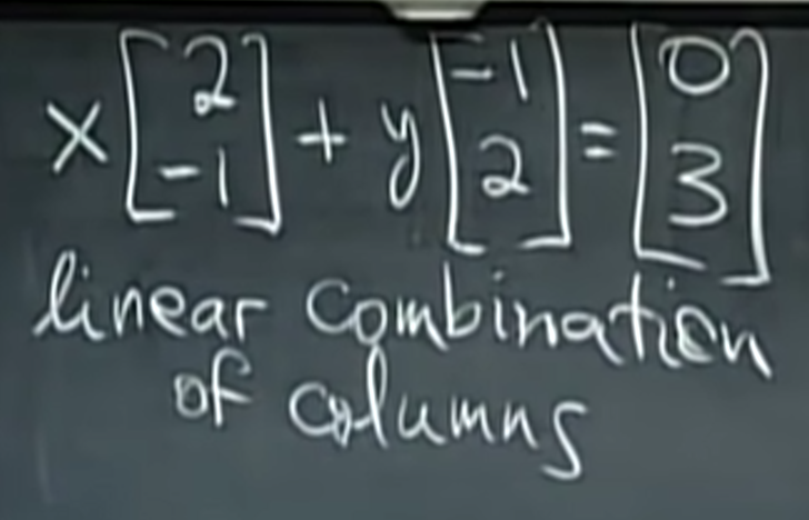 문자 그대로 이야기하자면, 열의 관점에서 선형 시스템을 보는 것입니다. 선형 방정식들을 열 벡터들의 선형 결합(linear combination)으로 표현할 수도 있습니다.