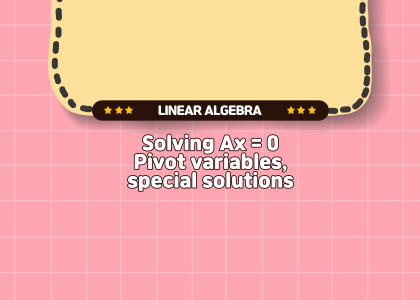 "MIT 18.06 Linear Algebra, Spring 2005"의 7주차 "Solving Ax = 0: pivot variables, special solutions"에 대해서 정리해 봤습니다.