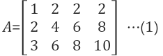 Column 관점에서 살펴보면 column 2는 column 1의 2배로서, column 1과 column 2는 상호 종속적입니다(dependent). 다음은 row 관점에서 살펴보면 row 1과 row 2를 더하면 row 3가 됩니다. 따라서 row 3는 독립적이지 않습니다 (not independent).