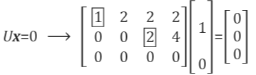 우리는 지금까지 Ax=0에 대한 해를 구하고자 했습니다. 이번에는 위에서 계산한 A를 소거한 행렬인 U에 대한 해, 즉 Ux=0를 구하고자 합니다.