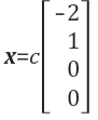 임의의 상수 c가 곱해진 해 x는 4차원 공간 R4에서 무한대의 2차원 line을 표현합니다. 이때 x는 분명 Null space상에 존재합니다. 하지만, 위의 식의 x는 A와 U에 대한 모든 Null space를 나타내지 않습니다. 행렬 A는 2개의 free variable을 가지고 있습니다. 즉 x2와 x4가 free variable인데, 우리는 x2=1, x4=0으로 결정했을 때의 해를 구한 것입니다. 다른 free variable인 x2=0, x4=1일 때의 해를 살펴보겠습니다.