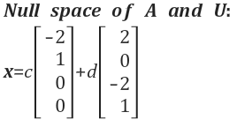 계산 A와 U에 대한 해 x는 Null space에 있습니다. 나머지 해는 임의의 상수 c를 x에 곱해주면 됩니다.