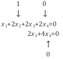 즉, column의 수 4에서 rank의 수 2를 뺀 2가 최종적인 free variable의 수가 됩니다.