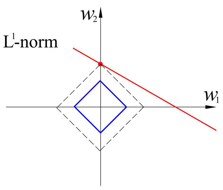 - L1 norm은 맨해튼 거리 혹은 택시 거리라고 많이 알려져 있으며, 택시가 도시의 블록 사이를 이동해 다른 지점으로 이동하는 것과 같이 표현하고 있습니다.