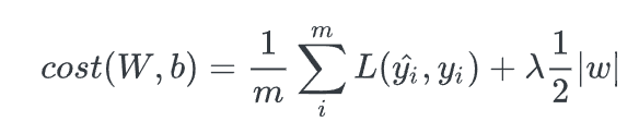 - 예측값과 실제 정답값과의 차이의 평균을 수식으로 나타내면 위와 같습니다.