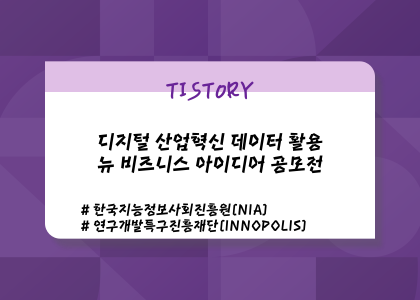 오늘은 '한국지능정보사회진흥원(NIA)'와 '연구개발특구진흥재단(INNOPOLIS)'가 주관하는 '디지털 산업혁신 데이터 활용 뉴 비즈니스 아이디어 공모전'에 대해서 알아봤습니다. 그럼 오늘 하루도 즐거운 나날되세요
