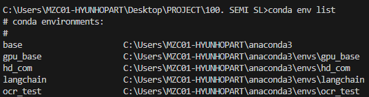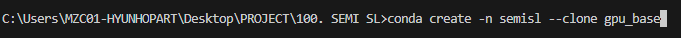 Conda clone 명령어를 적용하면, 아래처럼 'semisl' 환경이 생성된 것을 확인할 수 있습니다.