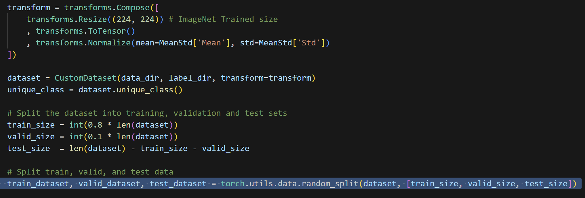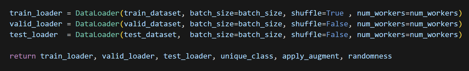 1. `test_loader`에서는 DataLoader를 초기화하고 있습니다. 이는 데이터셋을 구성해서, train, valid, test 데이터셋을 구분하여, pytorch dataloader로 각각 train, valid 그리고 test dataloader의 데이터입니다.