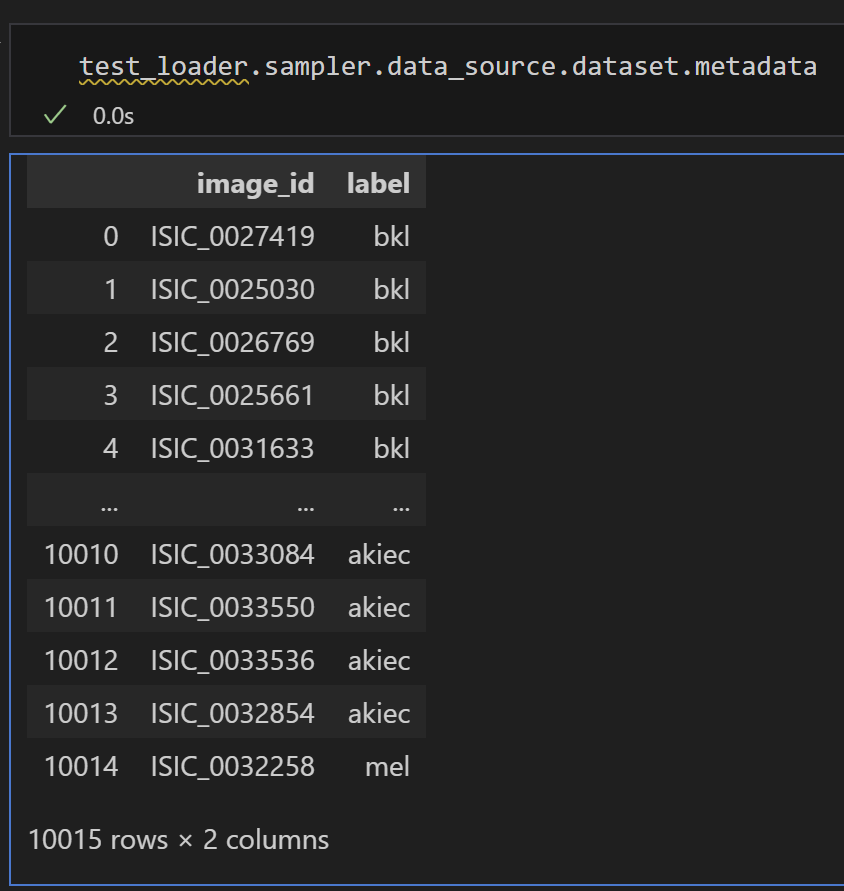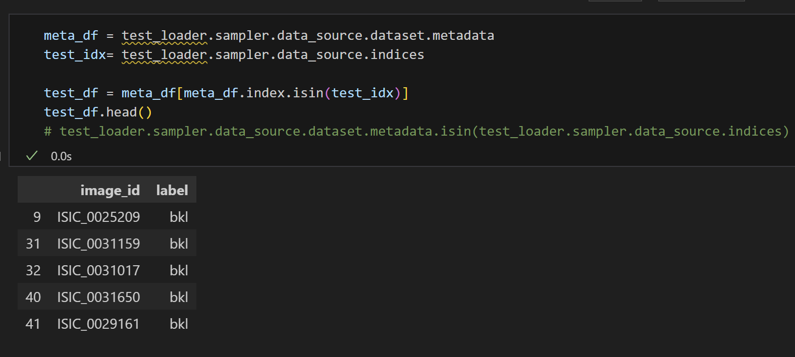 2. `test_loader.sampler.data_source.dataset.metadata`는 DataLoader가 로드한 데이터셋의 메타 정보를 나타냅니다. 여기서는 이를 `meta_df`에 저장하고 있습니다.