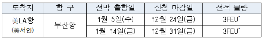 | 지원대상 | 국내 수출 중소기업 (실화주) - 한국發 미주 수출 물량이 있는 수출 중소기업 |