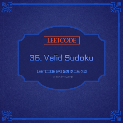 오늘은 Leetcode 알고리즘 문제 '36. Valid Sudoku'에 대해서 살펴보고자 합니다.