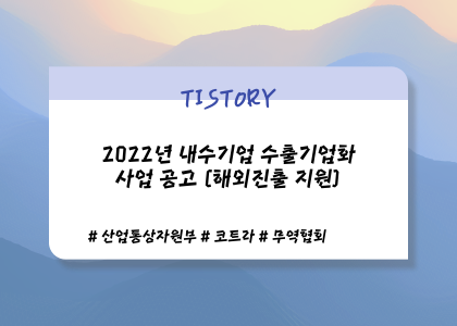 오늘은 '산업통상자원부', '코트라(KOTRA)' 그리고 '무역협회(KITA)'가 주관하는 '2022년 내수기업 수출기업화 사업 공고'에 대해서 알아봤습니다. 그럼 오늘 하루도 즐거운 나날 되세요