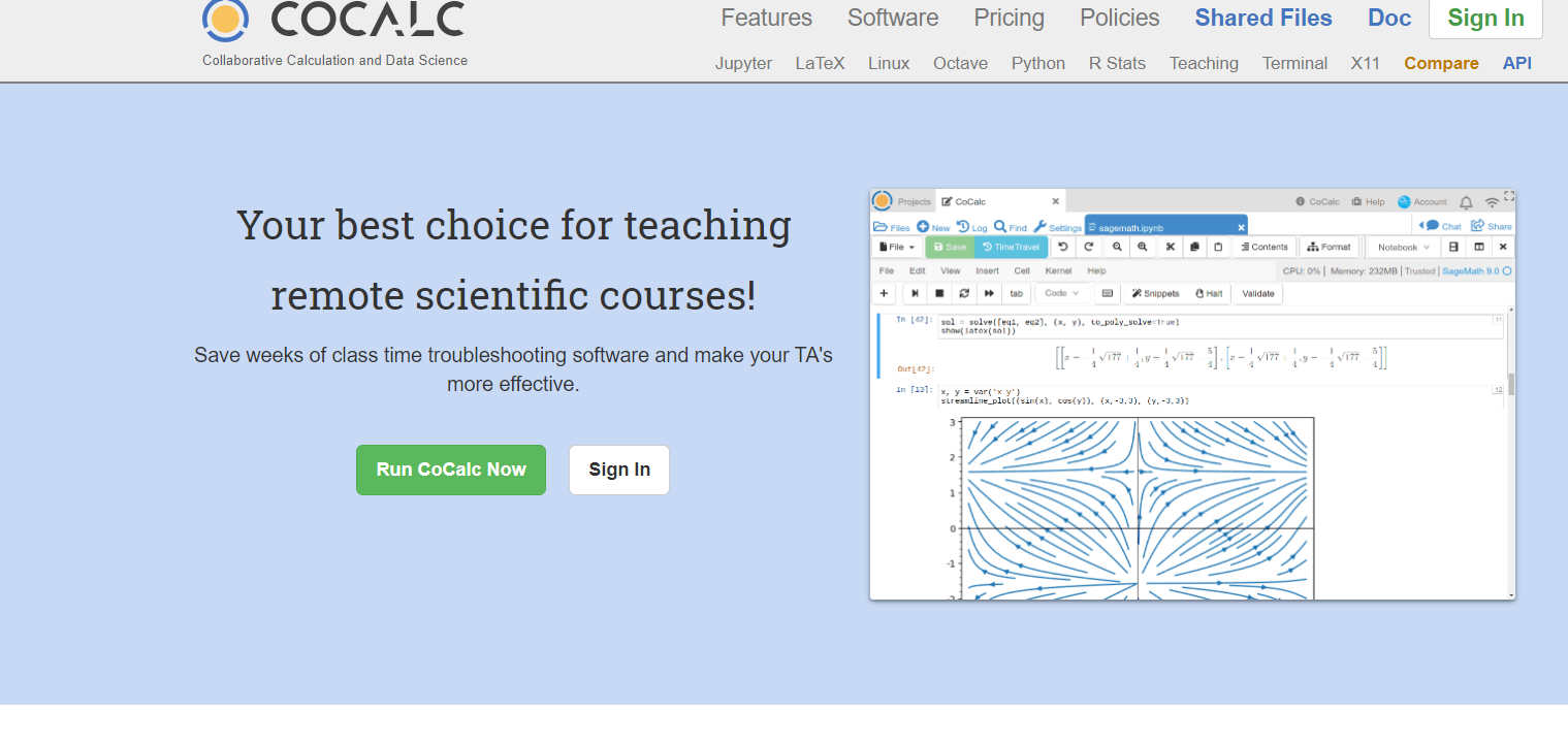 그래서, 구글링해본 결과, 설치없이 공부하고 연습할 수 있는 페이지에 Cocalc(Collaborative Calculation and Data Science)을 찾았습니다. 회원가입 필요없이, 무료로 연습해볼 수 있는 환경이라 활용해볼 예정입니다.