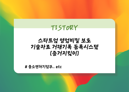 오늘은 '중소벤처기업부, 대ㆍ중소기업ㆍ농어업협력재단, 한국산업기술보호협회'가 주관하는 '기술자료 거래기록 등록시스템(증거 지킴이)'에 대해서 알아봤습니다. 그럼 오늘 하루도 즐거운 나날 되세요